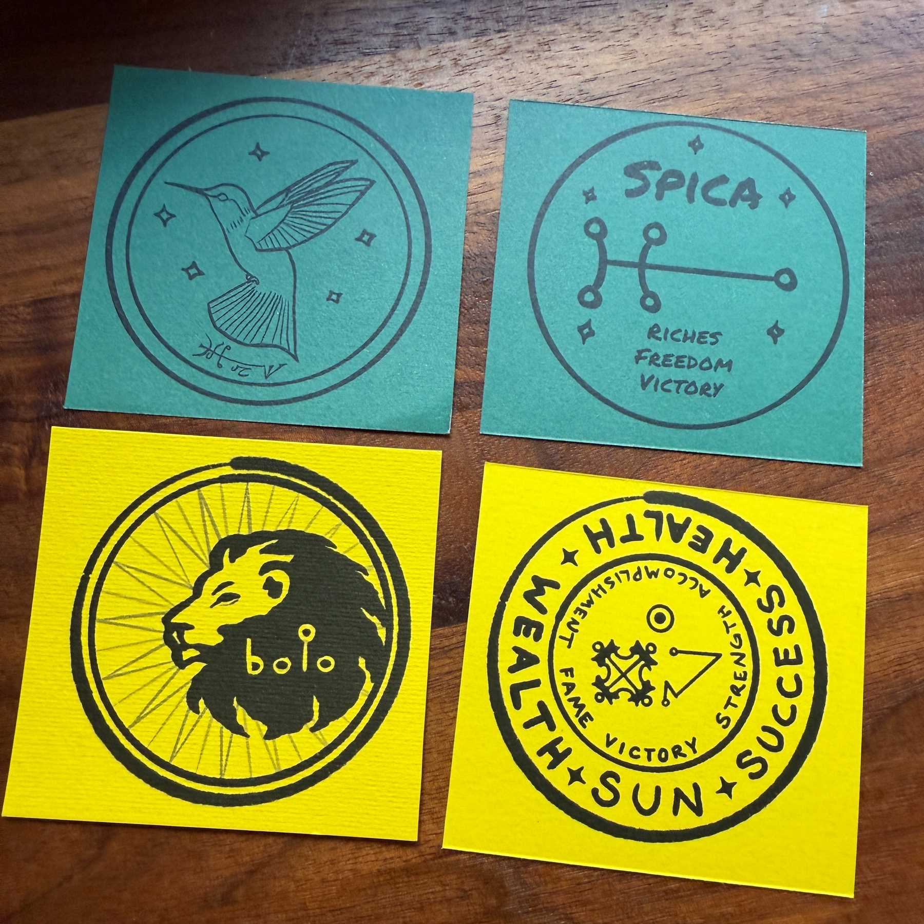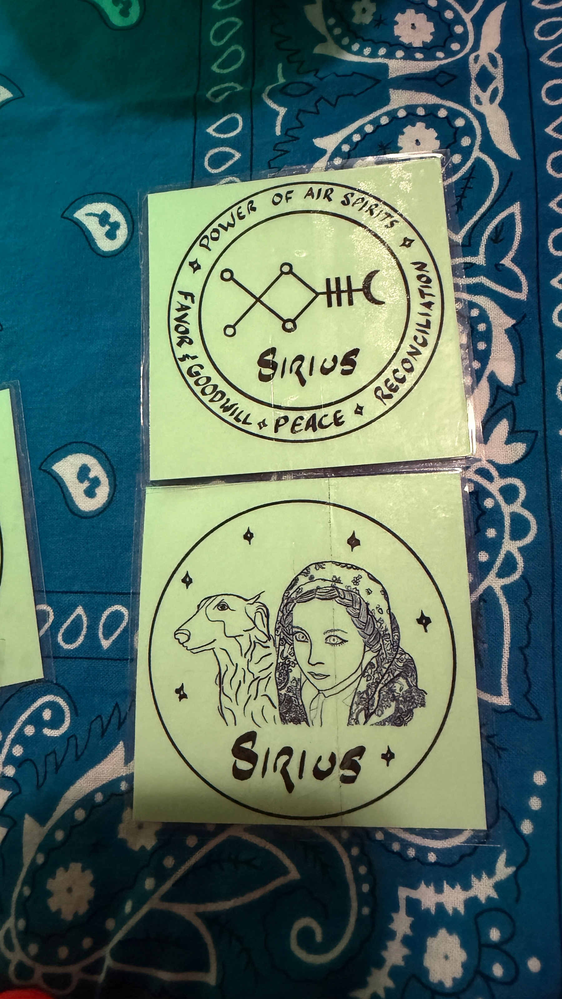 I have talismans for the Sun, fixed star Spica, and fixed star Sirius already prepared. On the docket next are fixed stars Antares, Deneb Algedi, Algol, and Alcyone, and the constellation Andromeda.